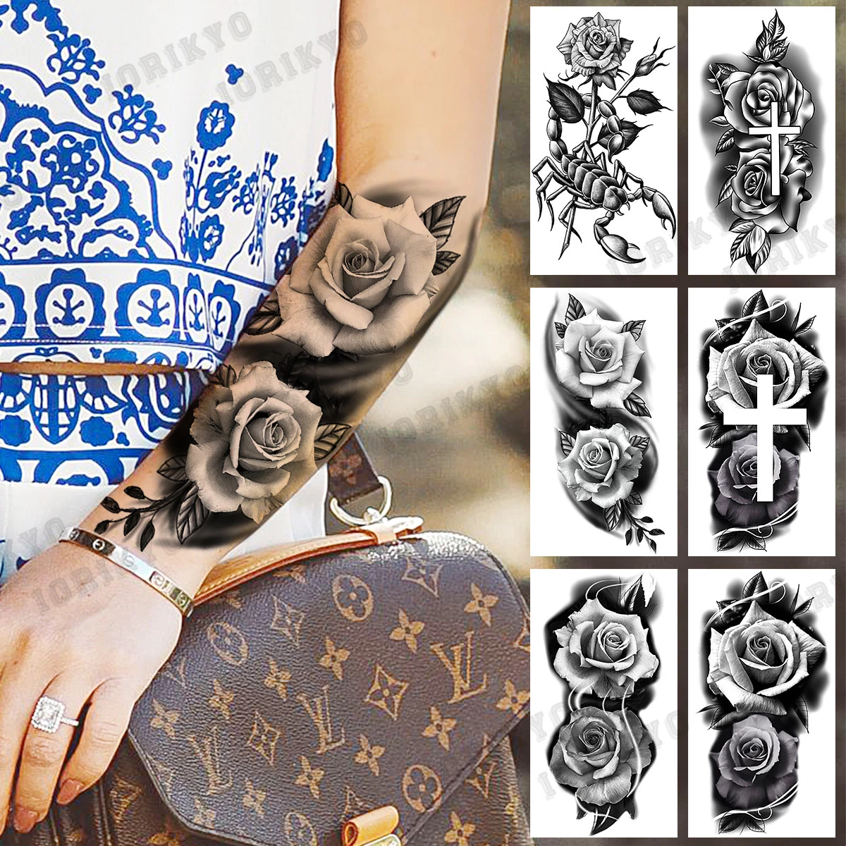 Black Rose Flower Arm Temporary Tattoos For Women Adult Girl Cross Scorpion Fake Tattoo Realistic Body Art Painting Tatoos Paper Aliexpress